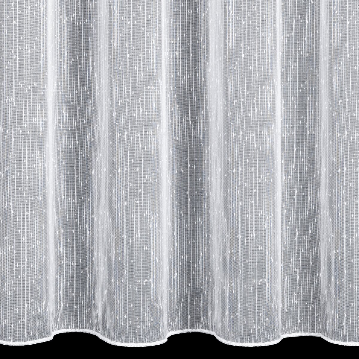 Elegancka firana z dekoracyjnej tkaniny Eurofirany – siatka z nicią moherową, która subtelnie odbija światło i nadaje wnętrzu lekkości oraz delikatnego połysku. Wzór deszczyk tworzy nowoczesny i elegancki efekt dekoracyjny na oknie.