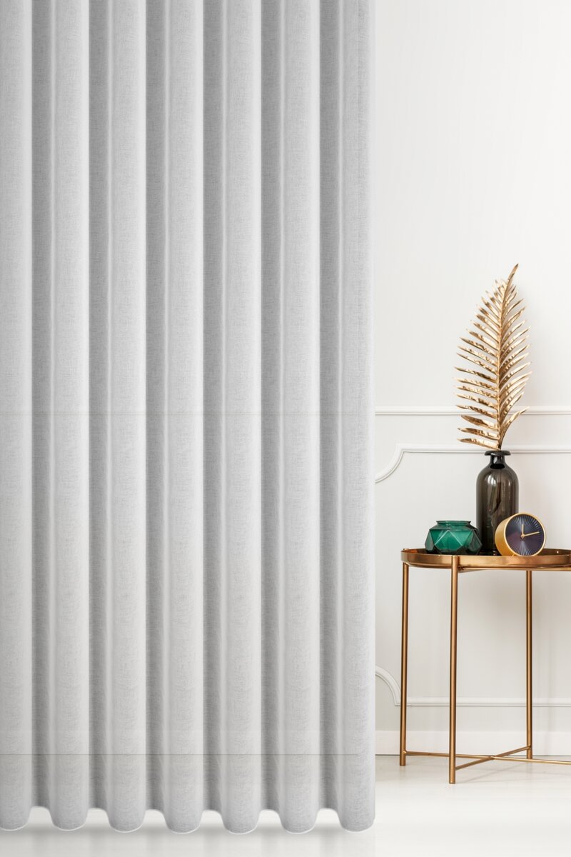 - Opis: Firanka wszyta w taśmę lub specjalny system, który tworzy idealne, równomierne fale po całej szerokości karnisza.