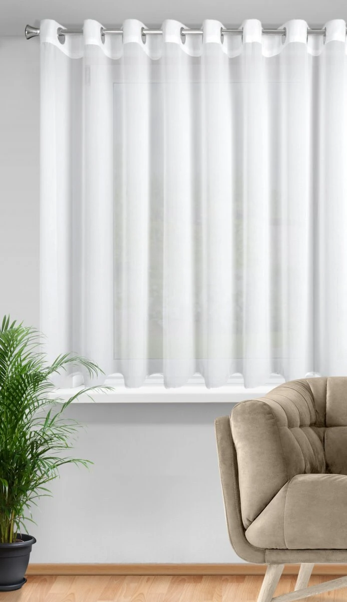 Firana gotowa szyfonowa 400x160 cm na przelotkach – lekka firana do salonu, gładka, nowoczesna