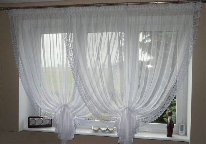 Firanka składa się z dwóch kokonów, które nachodzą na siebie na środku, tworząc piękny efekt delikatnego drapowania.