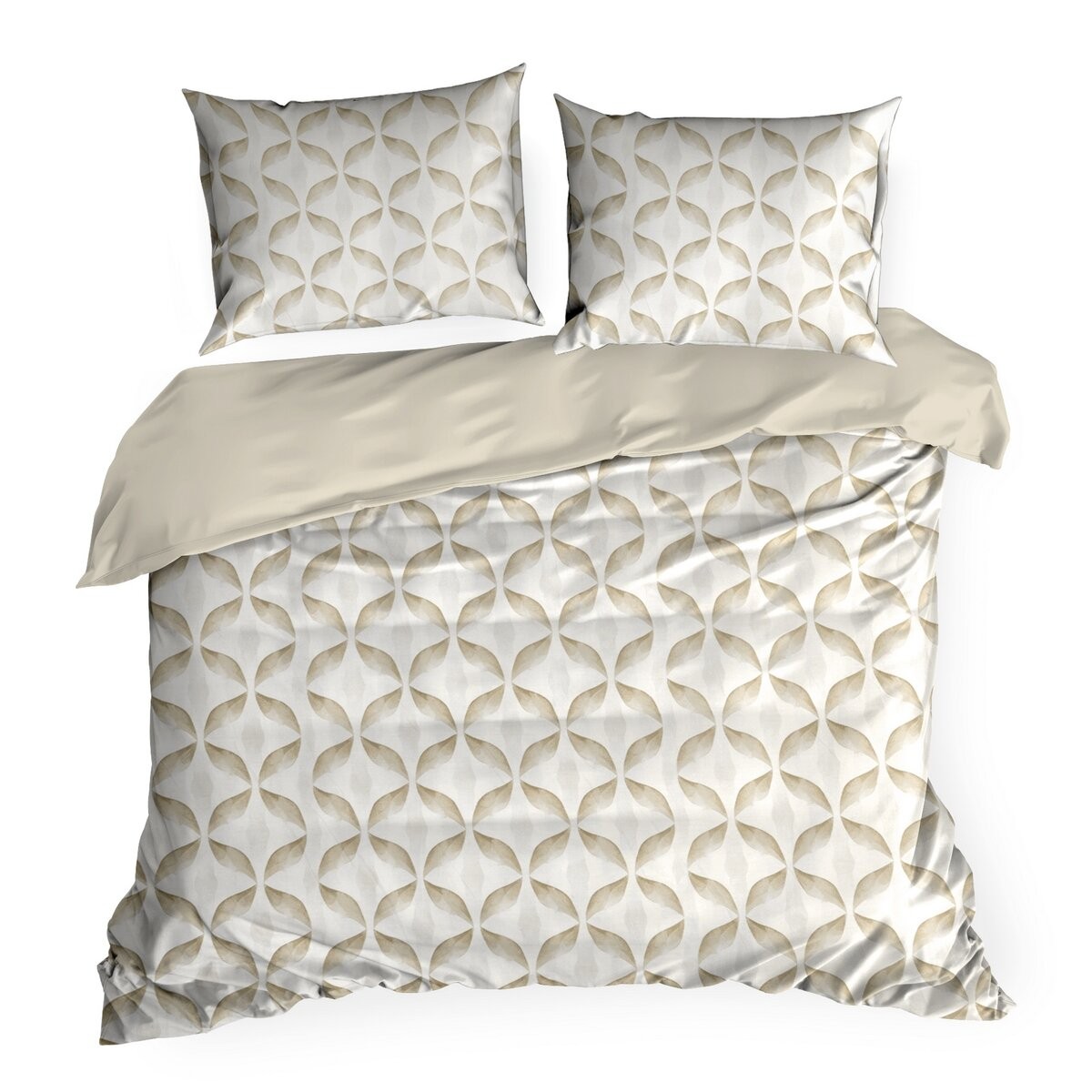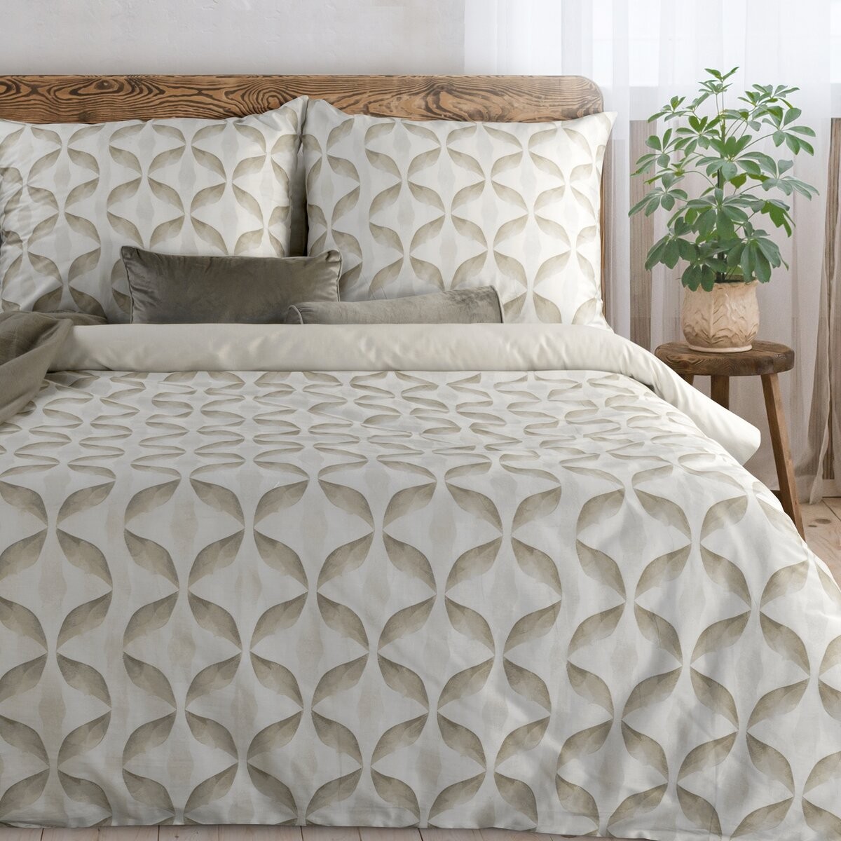 Komplet pościeli satyna bawełniana 220x200 beżowy wzór geometryczny – nowoczesna pościel Oeko-Tex