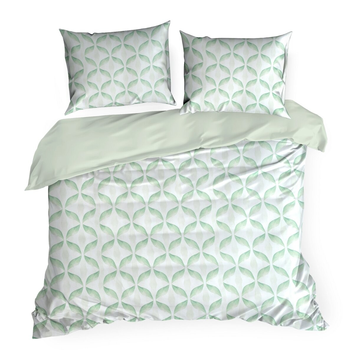 Komplet pościeli satyna bawełniana 220x200 zielony wzór geometryczny – nowoczesna pościel Oeko-Tex