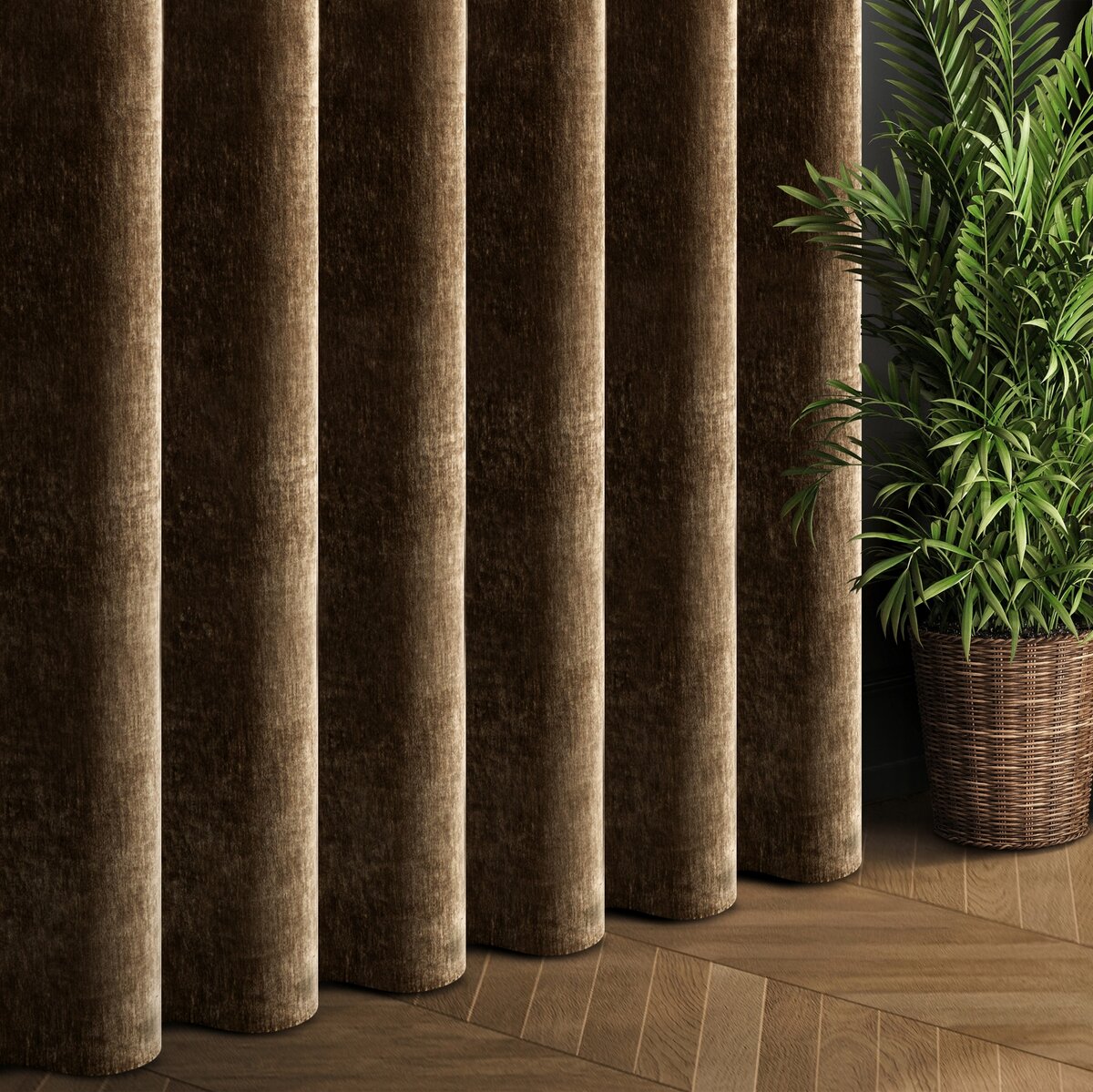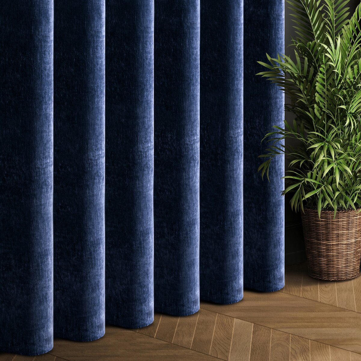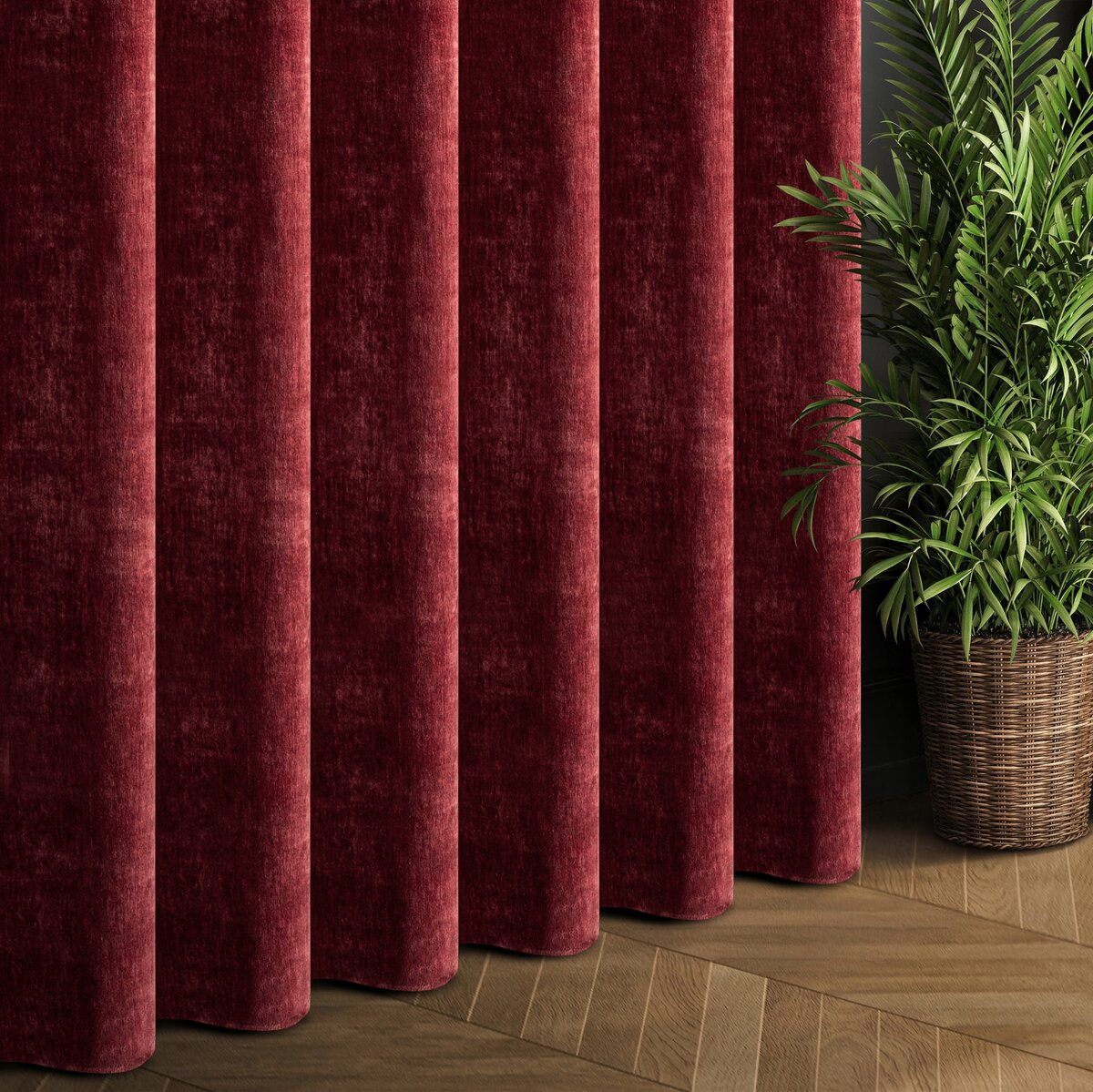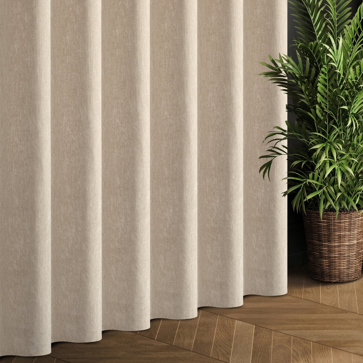 Elegancka zasłona wykonana z wysokiej jakości tkaniny Eurofirany typu szenil, która wyróżnia się miękką, przyjemną w dotyku strukturą oraz ponadczasowym, jednokolorowym wykończeniem. Gruba i mięsista tkanina doskonale układa się na karniszu, tworząc efektowne fałdy.