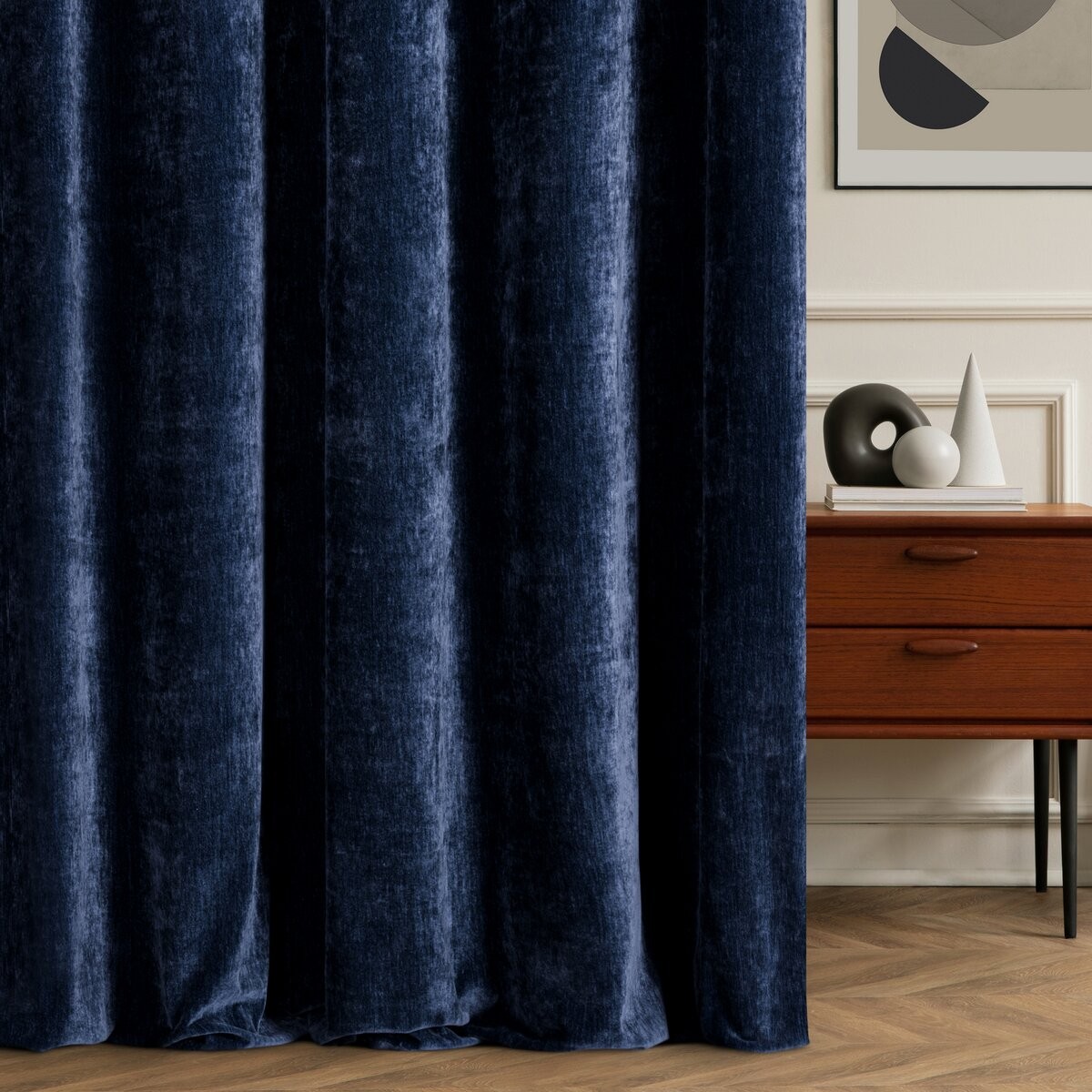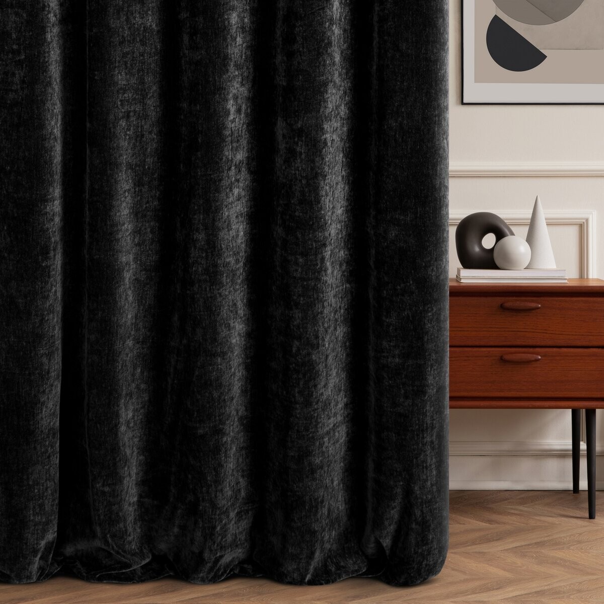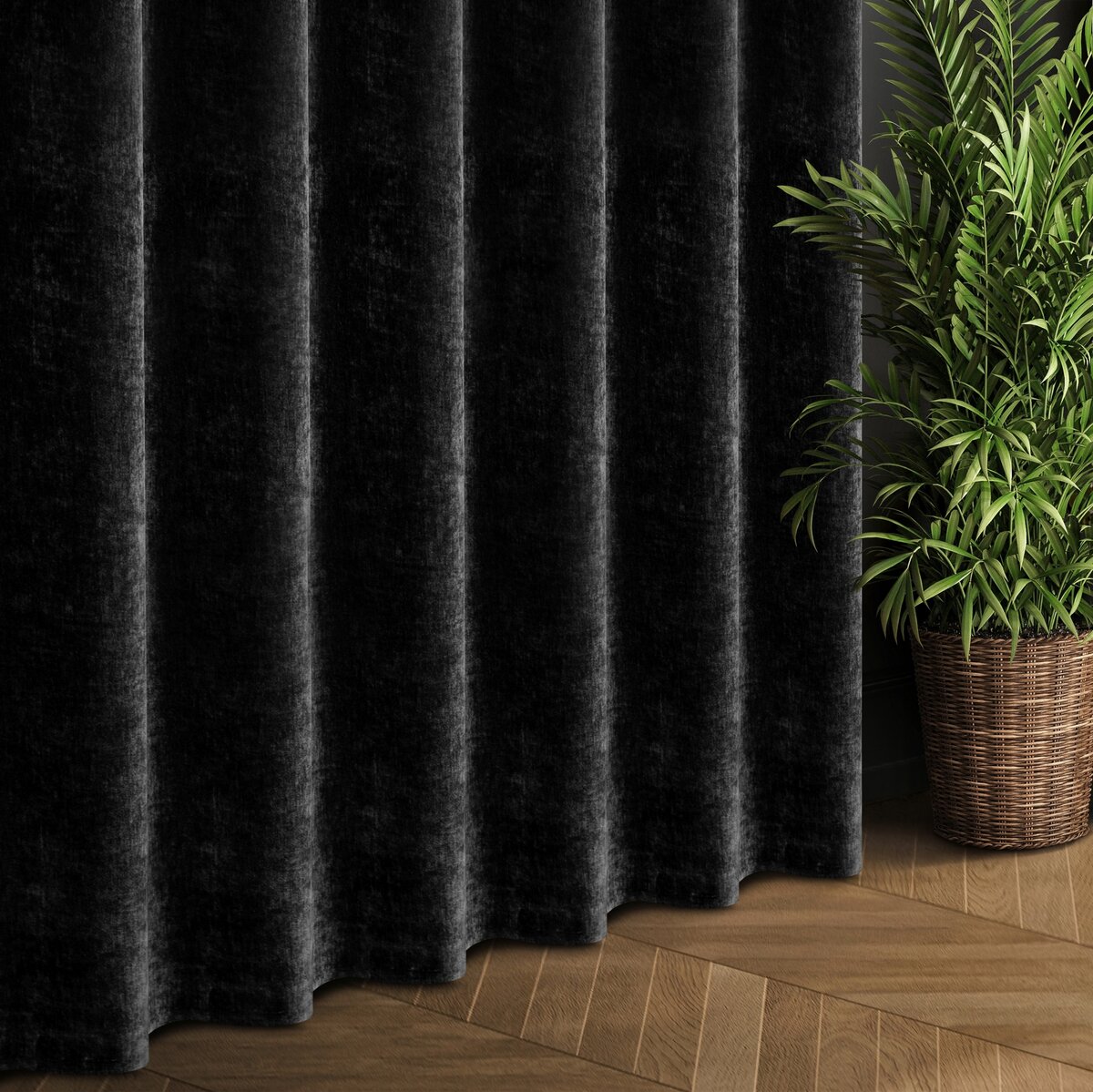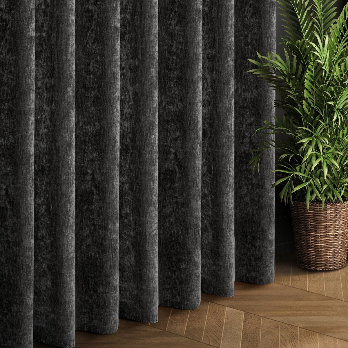 Elegancka zasłona wykonana z wysokiej jakości tkaniny Eurofirany typu szenil, która wyróżnia się miękką, przyjemną w dotyku strukturą oraz ponadczasowym, jednokolorowym wykończeniem. Gruba i mięsista tkanina doskonale układa się na karniszu, tworząc efektowne fałdy.