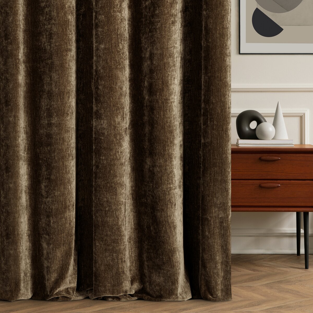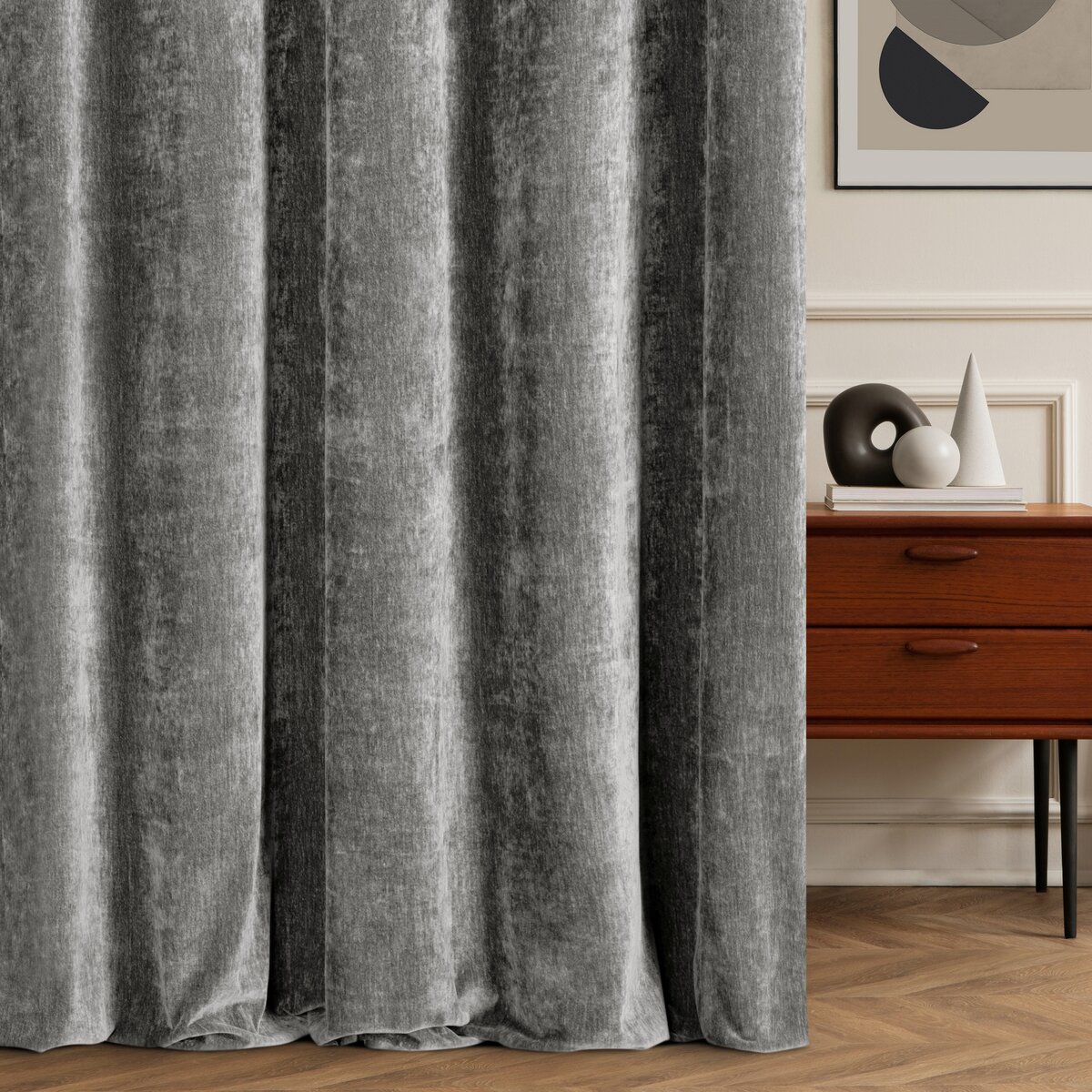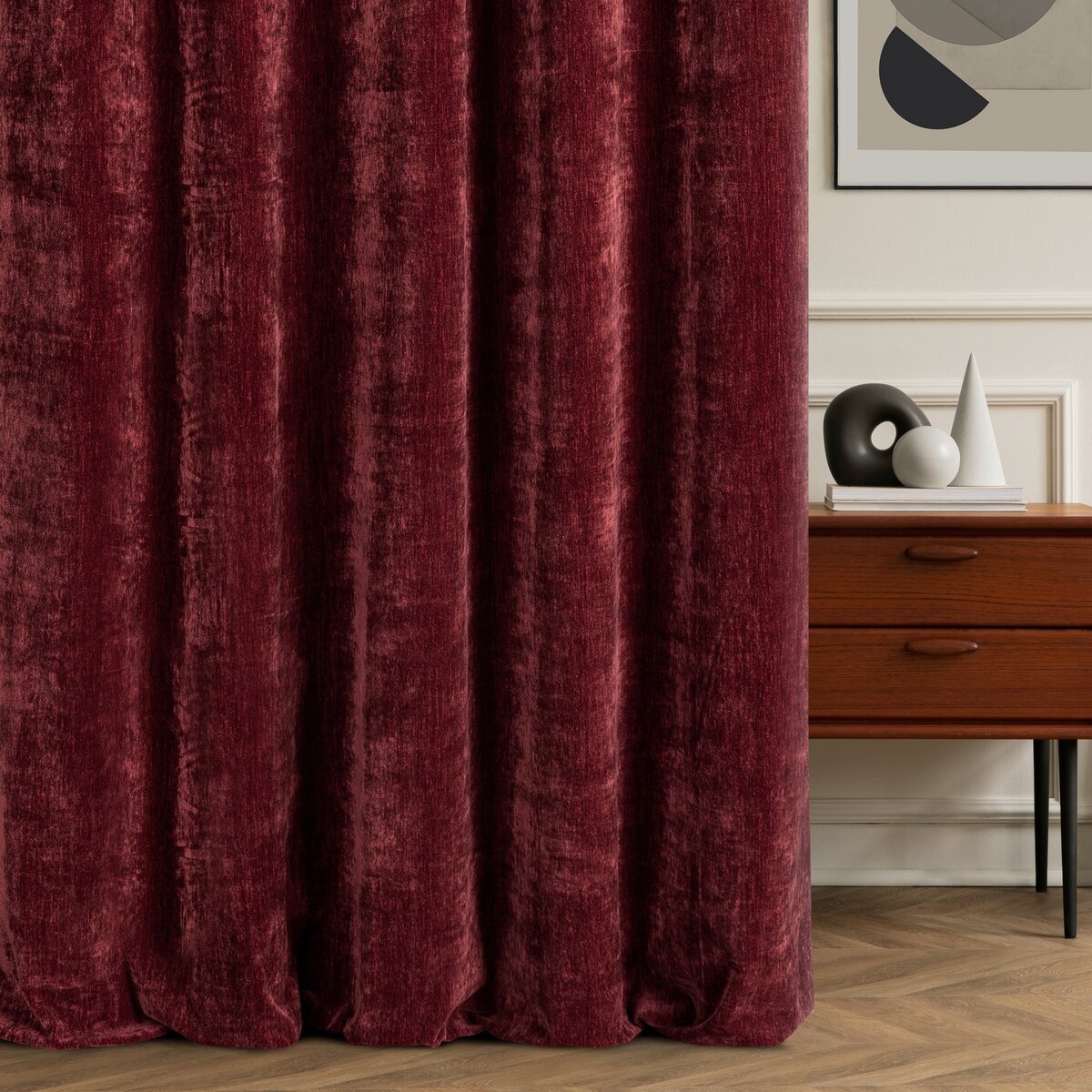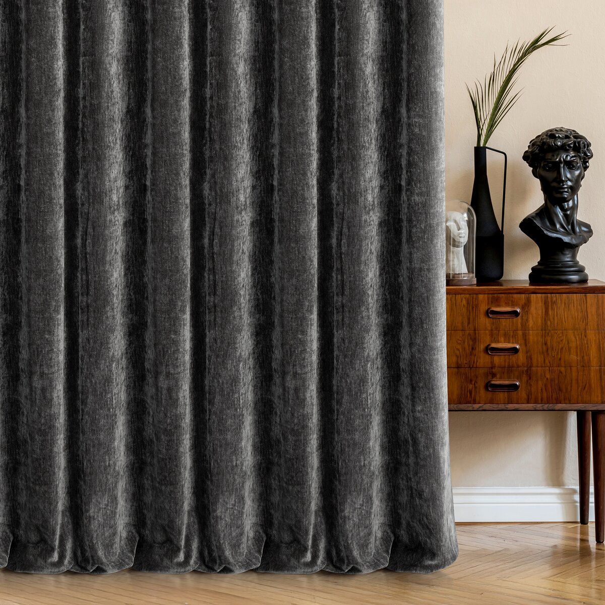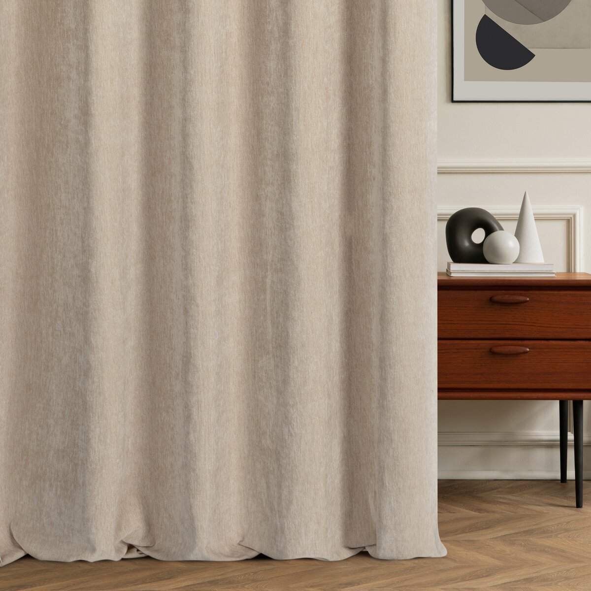 Szenilowa tkanina cechuje się delikatnie fakturowaną powierzchnią, dzięki czemu zasłona wygląda bardzo stylowo, a jednocześnie pozostaje uniwersalna. Jednokolorowy wzór pozwala łatwo dopasować ją do różnych aranżacji – od nowoczesnych po klasyczne.